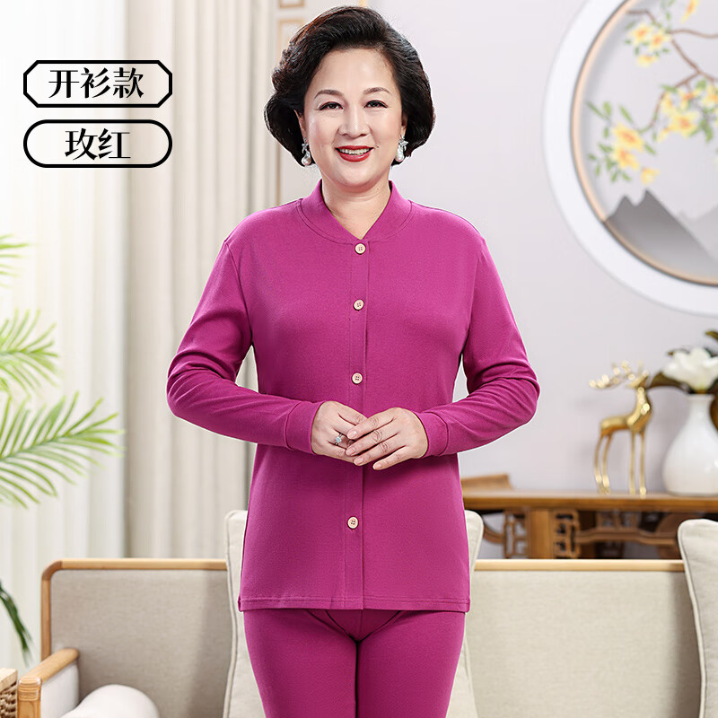 恒源祥女士纯棉保暖内衣中老年人冬季秋衣裤秋裤套装妈妈棉毛衫_408 180/2XL【纯棉3A级】 玫红