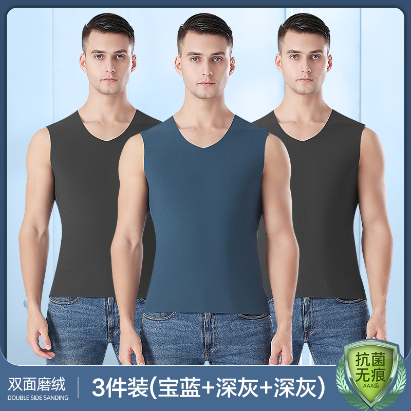 恒源祥男士保暖背心无痕内穿打底秋衣加绒上衣秋冬季单件上身内衣_297 170/L 【3件】深灰+深灰+宝蓝