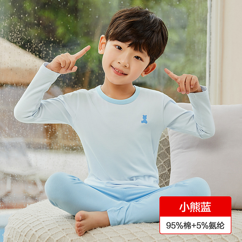 恒源祥儿童纯棉内衣套装秋冬棉毛衫男童女童薄款长袖宝宝秋衣秋裤_327_243 120cm(120cm【推荐身高115-125cm体重36- 【男童】ZMK304小熊蓝