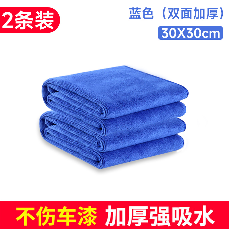 洗车毛巾擦车布专用吸水加厚车内饰大号抹布不掉毛不留痕汽车用品 A30×30cm【蓝色】2条装