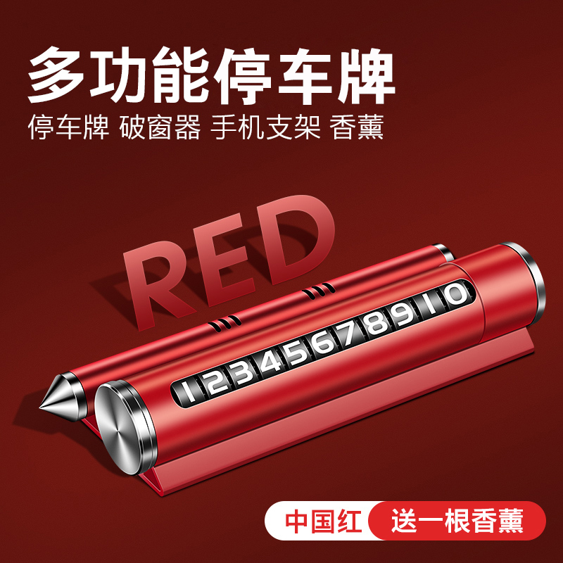 四合一全金属破窗安全锤临时停车牌车载香水车内挪移车电话号码牌_872_354 【红】防晒合金-单停车牌功能+可隐藏