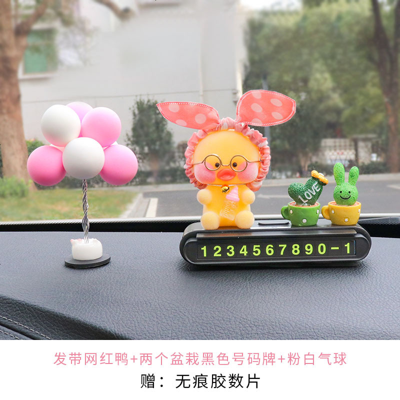 挪车电话号码牌车载临时停车牌车内号码牌创意可爱移车卡车上用品 网红鸭两个盆栽黑色号码牌+粉色气球