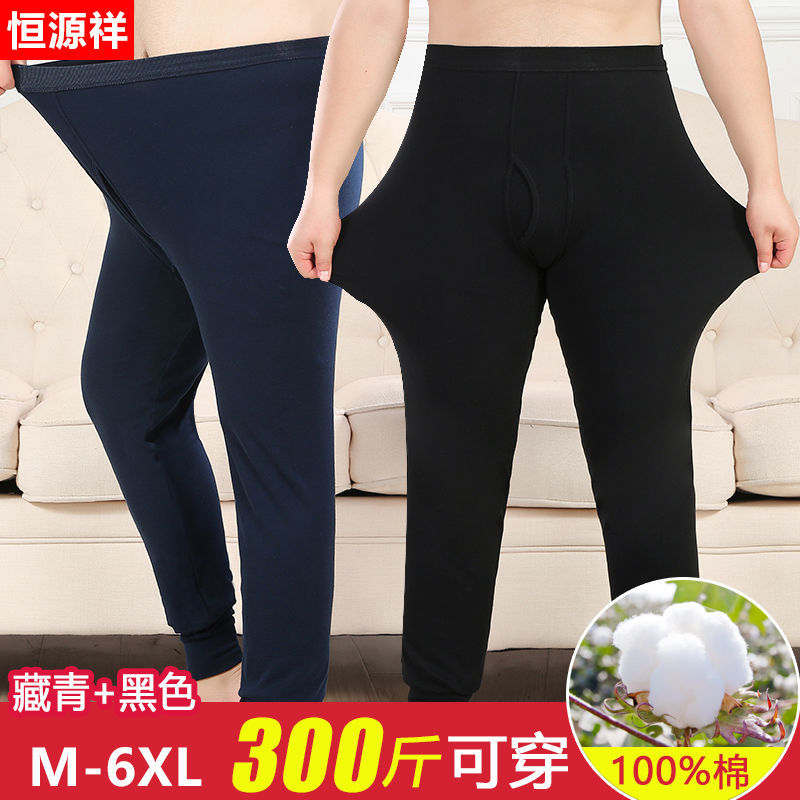 恒源祥加肥加大码纯棉男士秋裤大胖子300斤保暖衬裤打底肥佬线裤 4XL190 9藏青+黑色