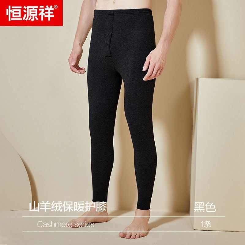 恒源祥男士保暖裤加绒加厚山羊绒秋冬季德绒打底裤毛裤秋裤棉裤男 3XL推荐180-200斤 420g山羊绒护膝款/黑色