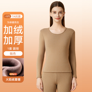 7A抗菌啄木鸟保暖内衣女士发热打底衫加绒加厚秋衣秋裤套装2024冬 7A抗菌咖色-单套 180 2XL推荐体重145-160