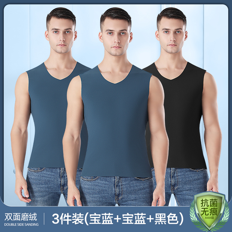 恒源祥男士保暖背心无痕内穿打底秋衣加绒上衣秋冬季单件上身内衣_297 180/2XL 【3件】宝蓝+宝蓝+黑色