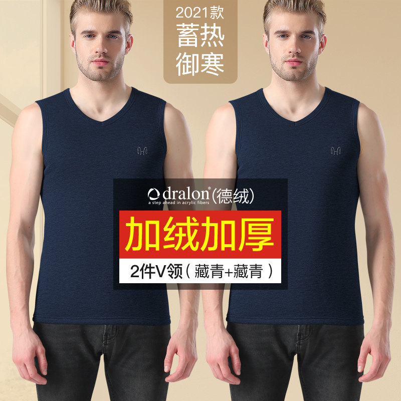 恒源祥男士保暖背心德绒发热内衣冬季山羊绒内穿上衣加绒加厚秋衣_438 180/2XL V领【德绒】藏青+藏青