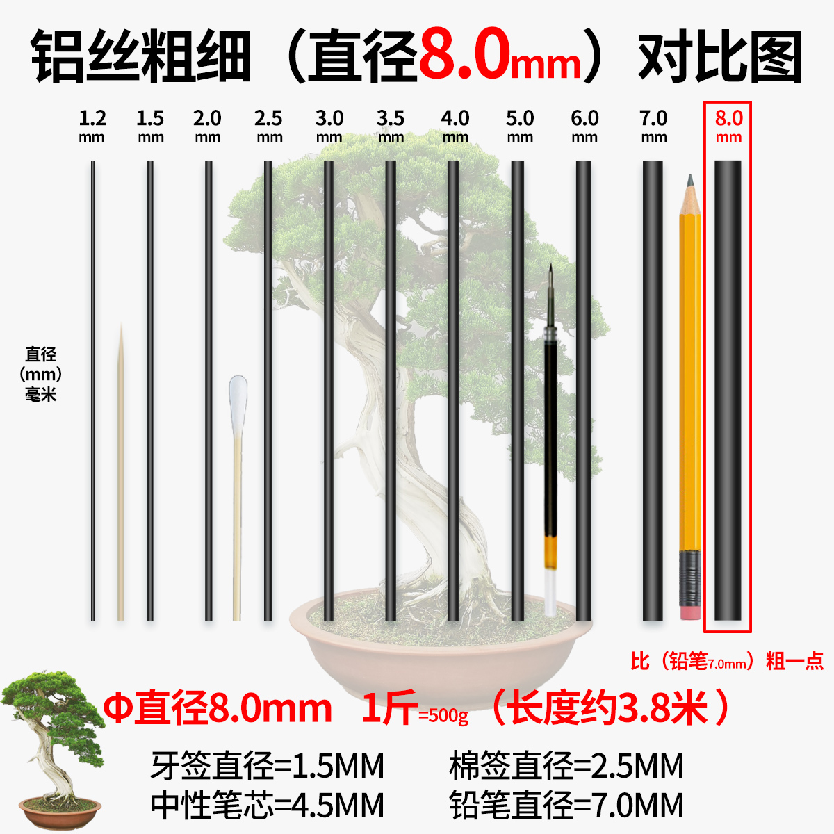 盆景造型专用铝丝铝线盘扎铝丝线蟠扎园艺铁丝花卉罗汉松定型铝松 黑色铝丝8.0-1斤(长约3.8米)
