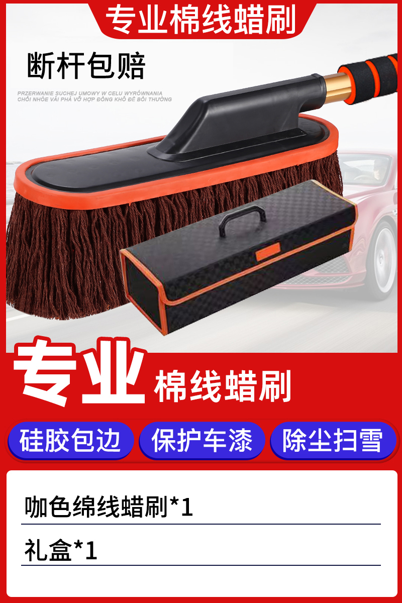 车用蜡拖掸子蜡刷汽车用品刷子拖把清洁洗车除尘车刷实用擦车新车 新升级高端礼盒咖色棉线蜡拖+礼盒