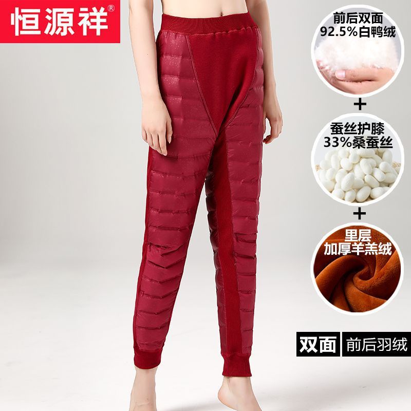 恒源祥羽绒裤男加绒加厚中老年人冬季保暖裤内穿棉裤东北绒裤爸爸 4XL 枣红色女(双面白鸭绒+抗寒零下温度)
