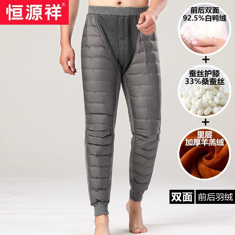 恒源祥羽绒裤男加绒加厚中老年人冬季保暖裤内穿棉裤东北绒裤爸爸 XL 浅灰色(双面白鸭绒+抗寒零下温度)