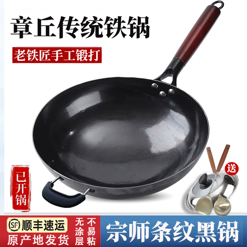 宗师古法竖纹黑锅 34cm加耳木把大师古法条纹黑锅+礼包