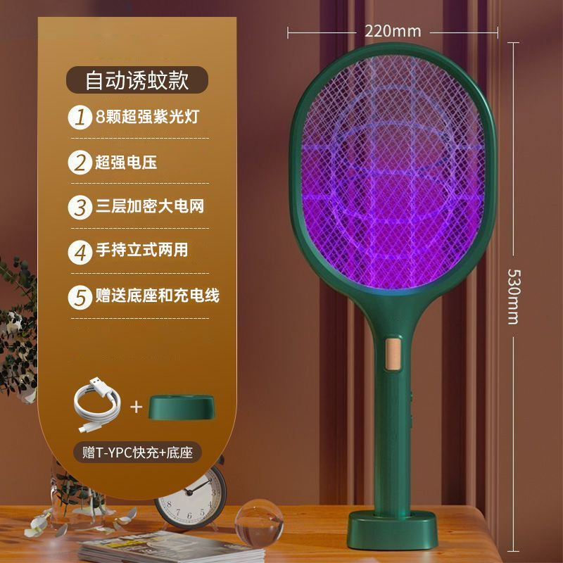 电蚊拍充电式家用强力灭蚊拍灭蚊灯二合一电苍蝇电蝇拍打蚊子神家 S立座旗舰款绿色-自动诱蚊8颗紫光诱蚊灯+锂电池+Type-
