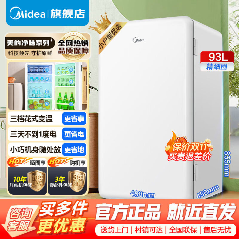 [官方正品]美的93升 单门小冰箱 灵巧小型 节能安静 冷藏家用宿舍办公室冰箱 租房神器 BC-93MF以旧换新