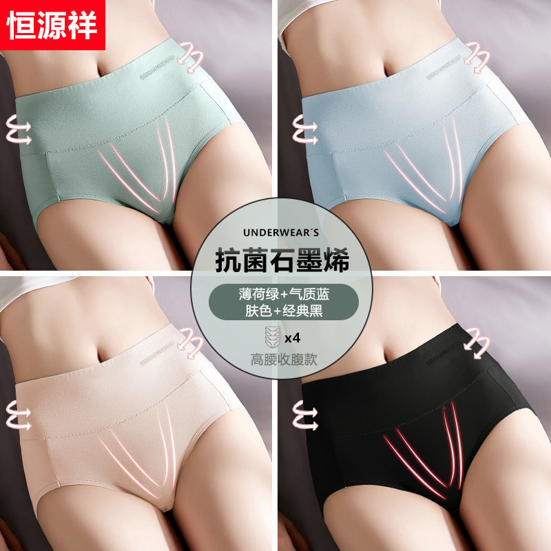 恒源祥内裤女纯棉高腰收腹中腰女士薄款石墨烯透气短裤全棉夏 165/L 焦糖+优雅粉+黑色+婴儿蓝