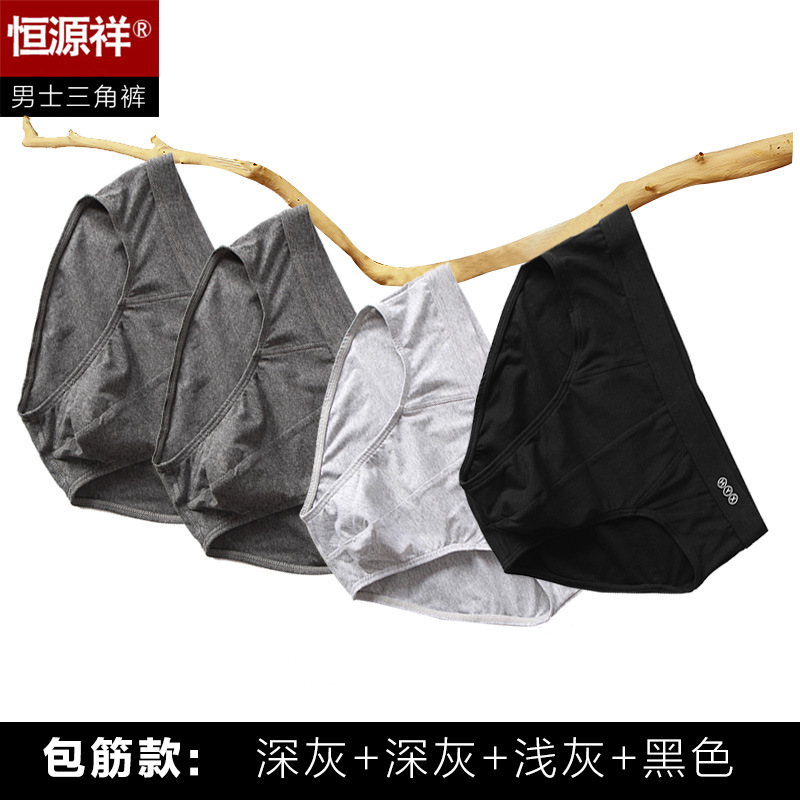 恒源祥男士内裤男三角裤纯棉质短裤透气性感莱卡棉中高腰大码裤头_743 XXL 包筋(深灰+深灰+浅灰+黑色)