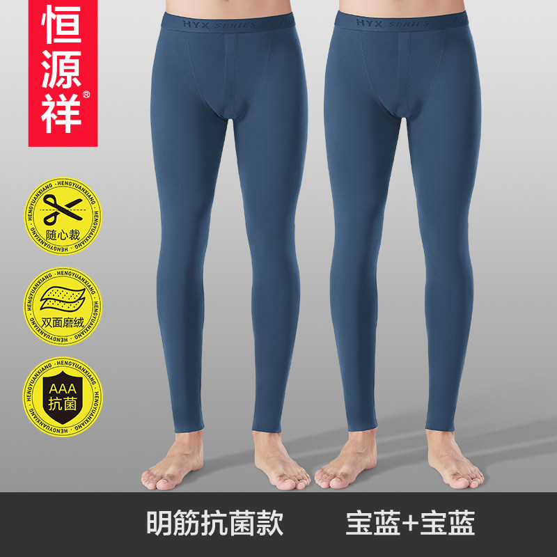 恒源祥男士秋裤德绒发热保暖薄款打底绒裤毛裤加绒加厚春秋季衬裤 190/4XL 【双面磨绒】宝蓝+宝蓝