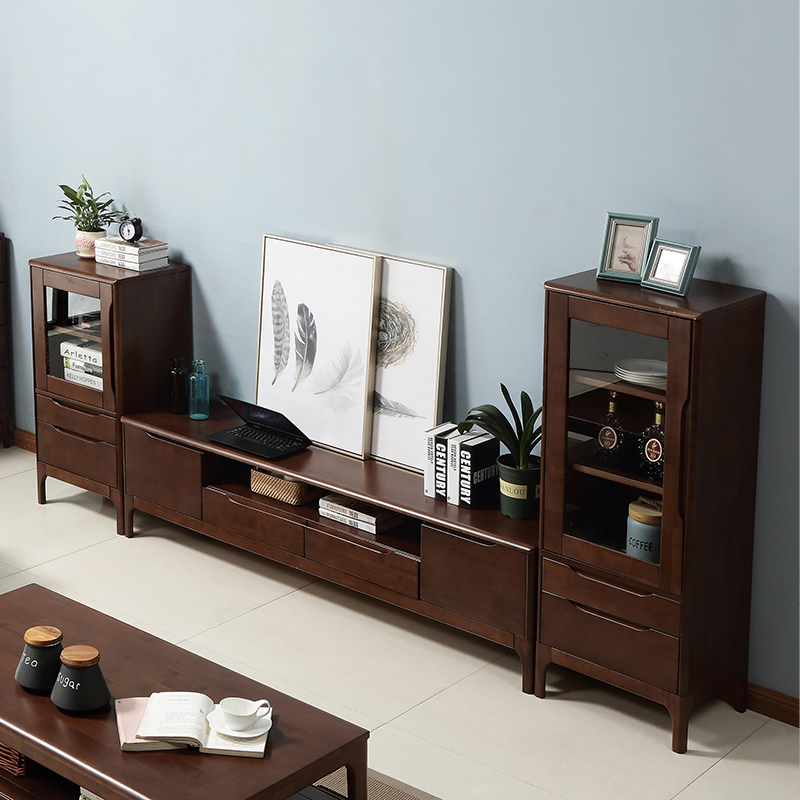 青木川 北欧风格日式全实木电视柜茶几组合套装小户型高柜矮柜组合背景墙柜高低组合影视柜地柜收纳柜子 简约现代 高柜(胡桃色)