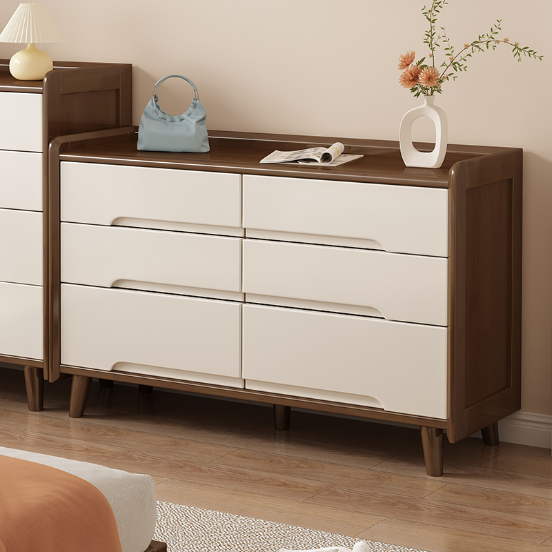 青木川 简约现代北欧日式五斗柜实木客厅卧室多用柜电视柜抽屉收纳储物柜床尾柜玄关柜九斗柜 胡桃+白色 160*40*76厘米