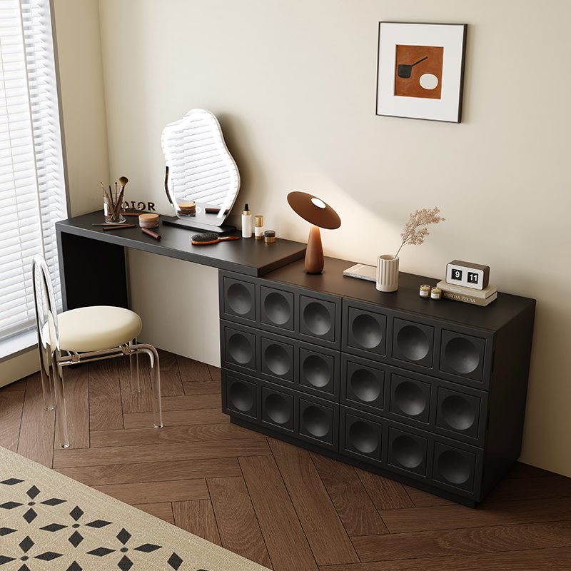 青木川 实木梳妆台斗柜一体2024最新款主卧室床尾柜多功能书桌小户型转角网红ins风化妆桌简约现代奶油风中古风 梳妆台【黑色】