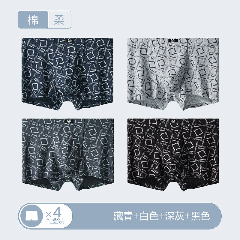 恒源祥男士大码内裤纯棉肥佬四角短裤头胖子男生加大加肥平角裤衩_166 5XL 4746C【潮流纯棉款AAA抗菌加肥加大超值4条装】