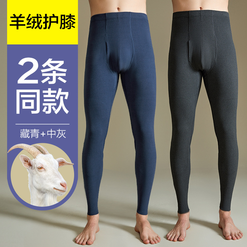 恒源祥保暖裤男士德绒发热秋裤含山羊绒护膝冬季打底衬裤线裤 180(XXL) 【德绒发热/山羊绒护膝】藏青+中灰