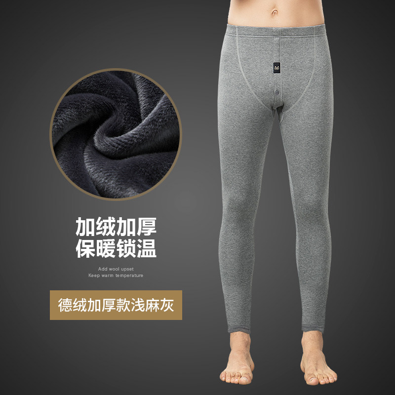 恒源祥加绒加厚保暖裤男士德绒冬季含羊毛护膝打底棉毛线秋裤绒裤 170/L 【2条】加厚德绒(浅麻灰+浅麻灰)羊毛护膝