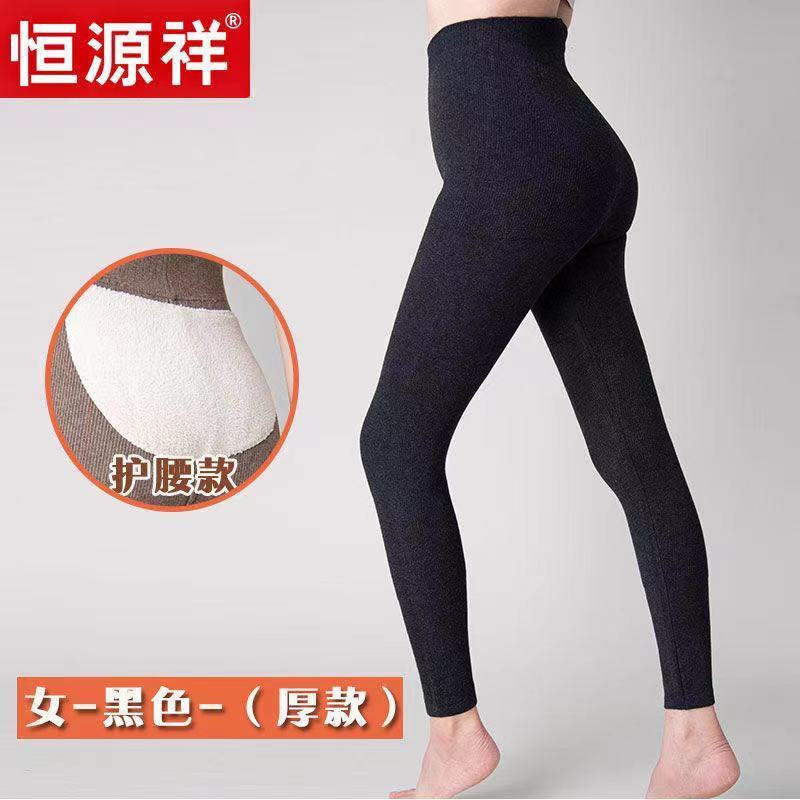 恒源祥羊毛裤男女款保暖裤男厚款护腰绒裤线裤冬季男士秋裤打底裤 L 黑色女款3840