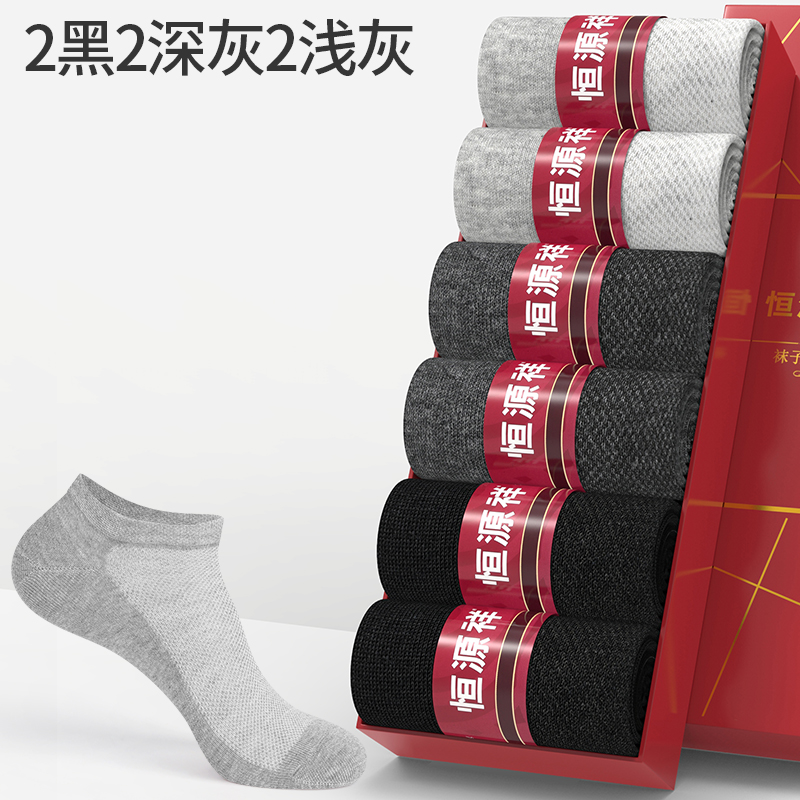 恒源祥夏季薄款浅口白色船袜纯棉男士袜子全棉透气排汗网眼短筒袜_1 男士短筒(38-44码) 春夏网眼款-2黑2深灰2浅灰