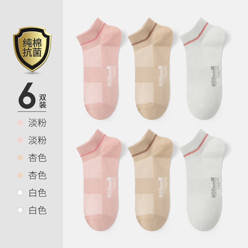 恒源祥纯棉袜子女士船袜春秋薄款隐形短袜浅口可爱日系女袜春夏季 纯棉抗菌女袜(35-39码) 2淡粉+2米色+2白色