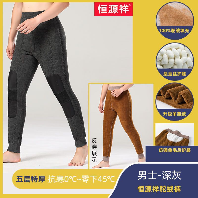 恒源祥男士德绒保暖棉裤含羊毛裤护膝秋裤打底加厚加绒裤秋冬毛裤 170/L 德绒加厚-羊绒护膝-藏青-保暖裤