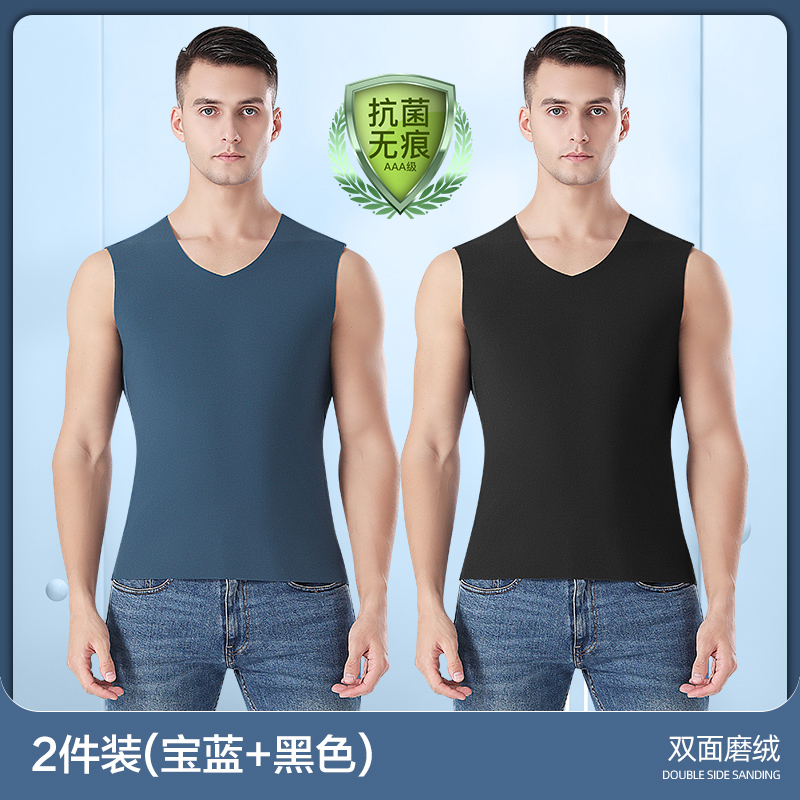 恒源祥男士保暖背心无痕内穿打底秋衣加绒上衣秋冬季单件上身内衣_297 180/2XL 【2件】黑色+宝蓝
