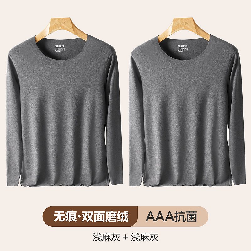 恒源祥保暖内衣男士秋衣单件上衣薄款无痕内穿紧身打底衫冬季 170/L 无痕【双面磨绒】浅麻灰+浅麻灰