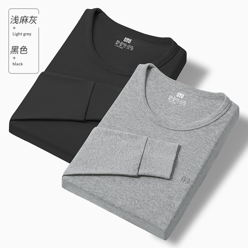恒源祥男士秋衣单件上衣薄款纯棉紧身打底保暖内衣棉毛衫秋冬 170/L 【BN-2上衣男】黑色+浅麻灰圆领
