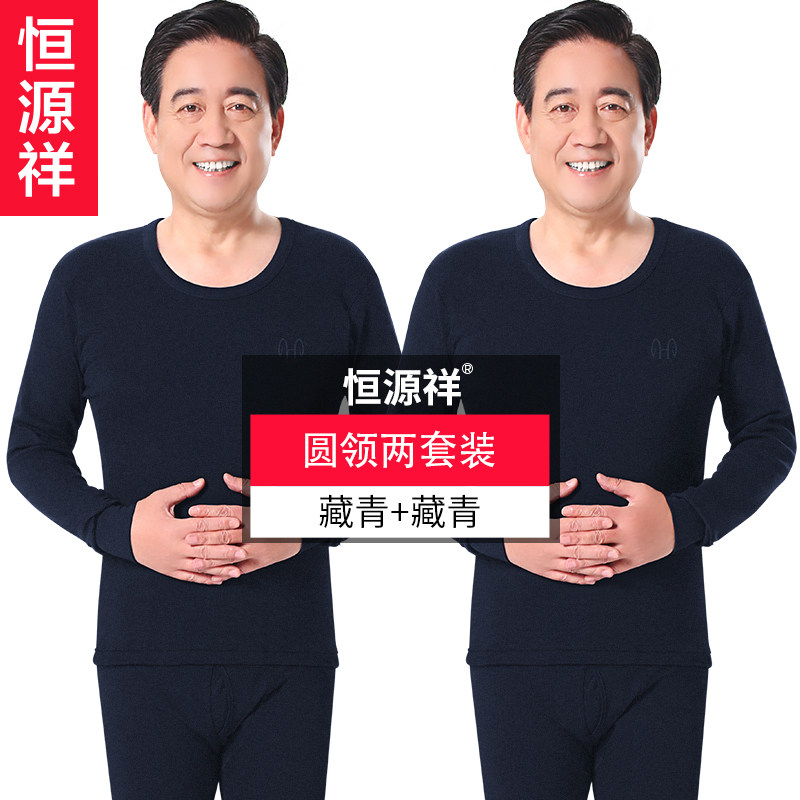 恒源祥男士秋衣裤纯棉毛衫秋裤全棉薄款中老年人保暖内衣套装冬季_288_228 190/4XL AAA抗菌【圆领】藏青+藏青
