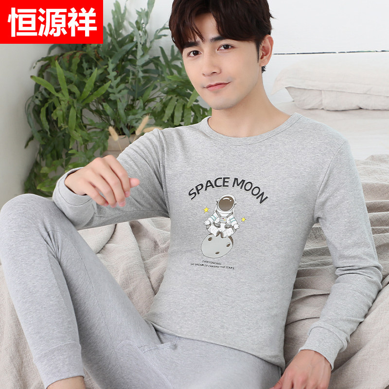 恒源祥青少年秋衣秋裤套装男纯棉薄款中大童学生保暖内衣全棉毛衫_217_50 180/105 【单套装】浅灰宇航员