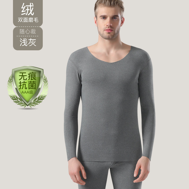 恒源祥无痕保暖内衣男士薄款德打底衫冬季发热绒秋衣秋裤套装 平板款(经典黑+深麻灰) 160【无痕双面磨毛,AAA级抗菌】