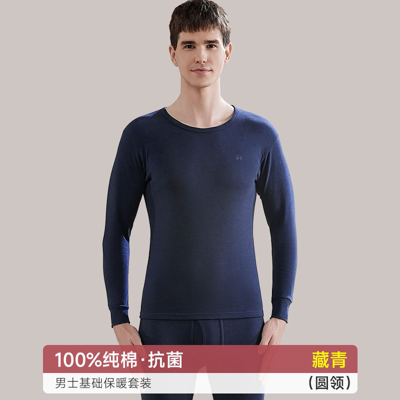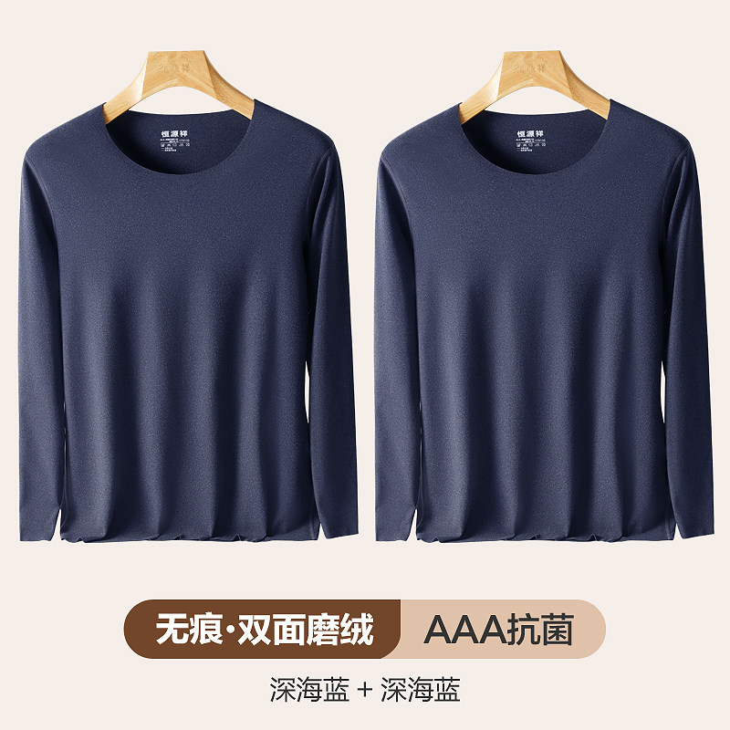 恒源祥男士保暖内衣加绒加厚无痕发热薄款秋衣裤秋裤套装冬季 【V领】黑色+宝蓝 165 M【无痕保暖AAA抗菌】