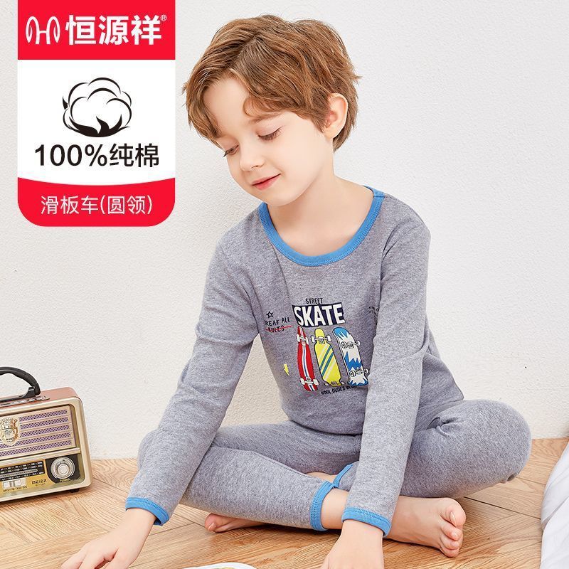 恒源祥儿童纯棉秋衣秋裤套装男童大童线衣棉女童男宝宝保暖内衣_623_129 推荐145-155CM/64-72斤 【滑板】圆领套装