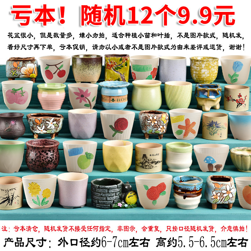 多肉花盆陶瓷多肉植物粗陶复古紫砂创意大小口径简约特价清仓家用 口径6-7cm随机花盆12个