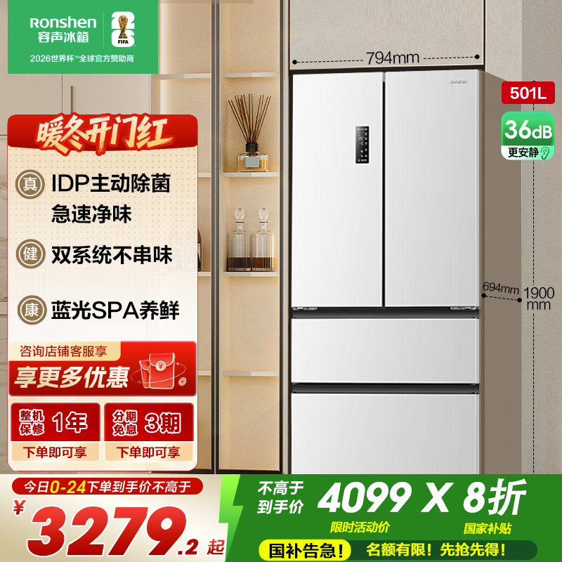 容声501pro IDP净味法式四门双系统家用风冷白色冰箱以旧换新补贴BCD-501WD3MPZ
