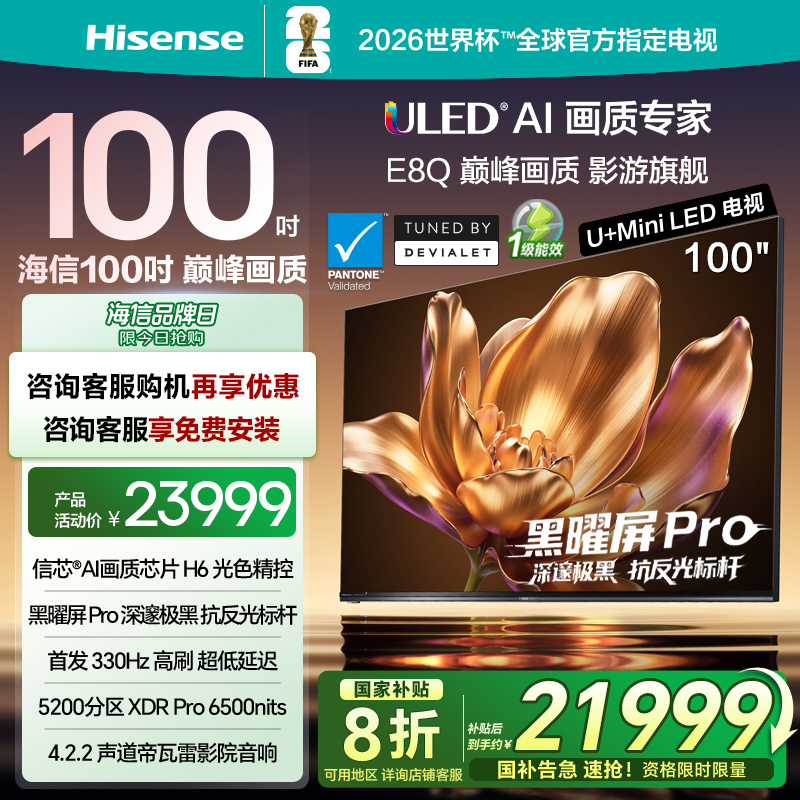 海信电视E8Q 100英寸 U+MiniLED 信芯H6黑曜屏Pro 以旧换新电视机