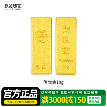 新金珠宝 Au999.9传世金投资金条10g黄金金砖 收藏黄金摆件理财保值 送礼馈赠保值投资 10克