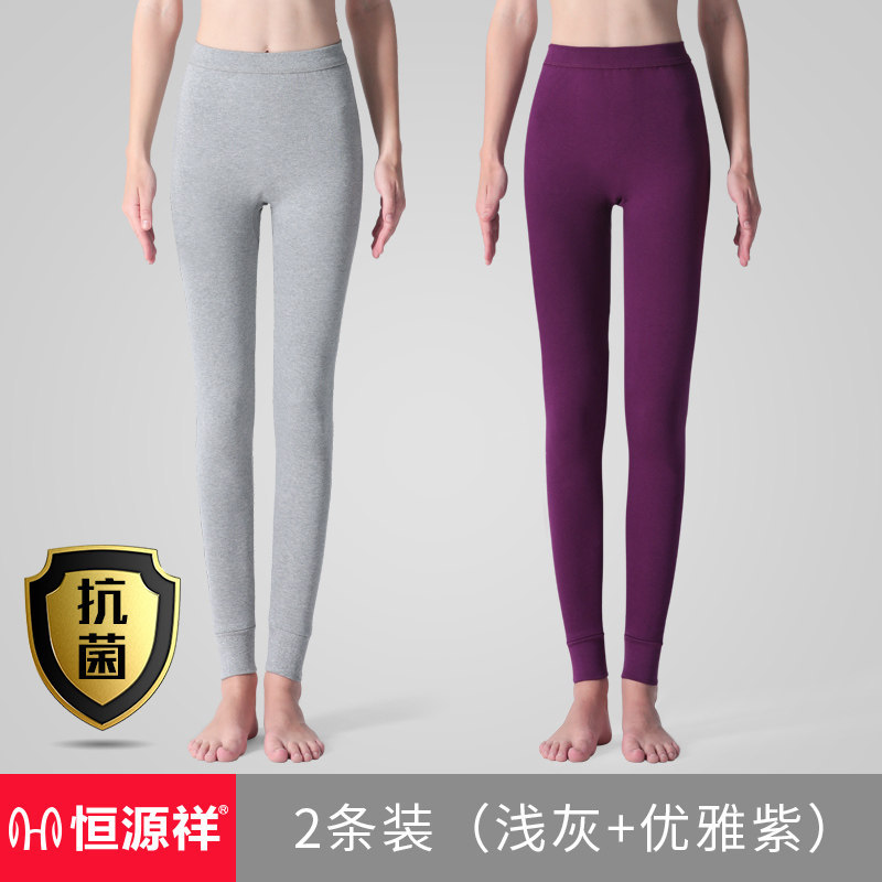 恒源祥秋裤女士纯棉毛裤衬裤薄内穿保暖线裤大码新款春秋冬季_2 170/L 浅灰+优雅紫