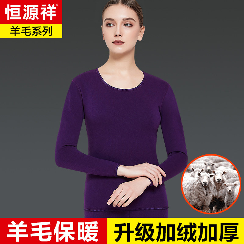 恒源祥羊毛暖绒保暖内衣男士秋冬加绒加厚秋裤秋衣裤套装男生打底_979 170(L)是 【加绒加厚】女款-紫色