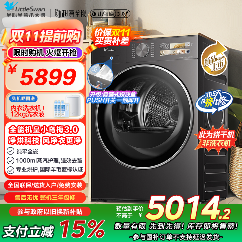 小天鹅(LittleSwan)10公斤热泵烘干机 TH10VE40 纯平全嵌 大风量 蒸发器自清洁[小乌梅3.0]