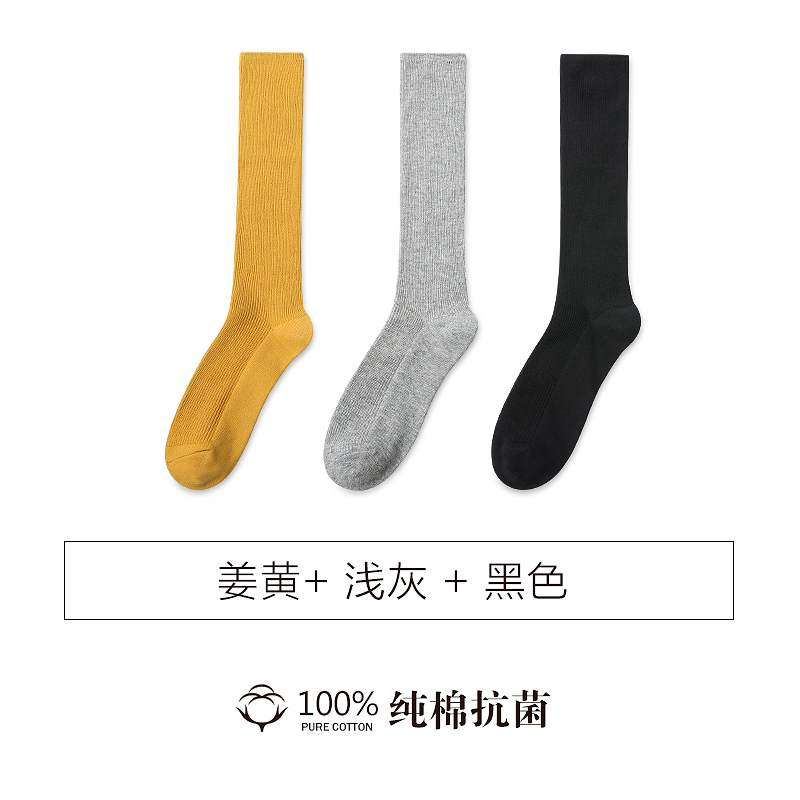 恒源祥长筒袜子女纯棉小腿袜春秋款长袜潮秋冬高筒及膝堆堆袜_508 均码 姜黄/浅灰/黑色