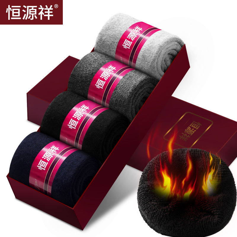 恒源祥袜子男秋冬季加绒加厚保暖毛圈纯棉冬天抗寒全棉中筒毛巾袜_1_336 默认尺寸 男士-4双混色