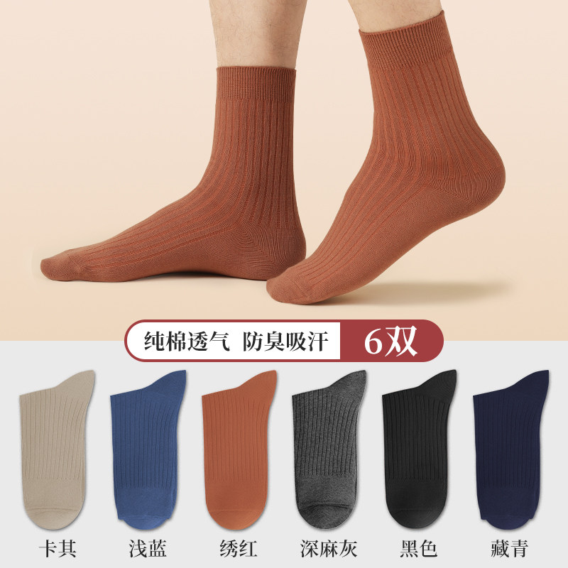 恒源祥袜子男士纯棉薄款春秋季长袜防臭吸汗中筒全棉袜长筒潮_767 纯棉抗菌中筒(38-44码) 卡其+锈红+浅蓝+深麻灰+黑色+藏青