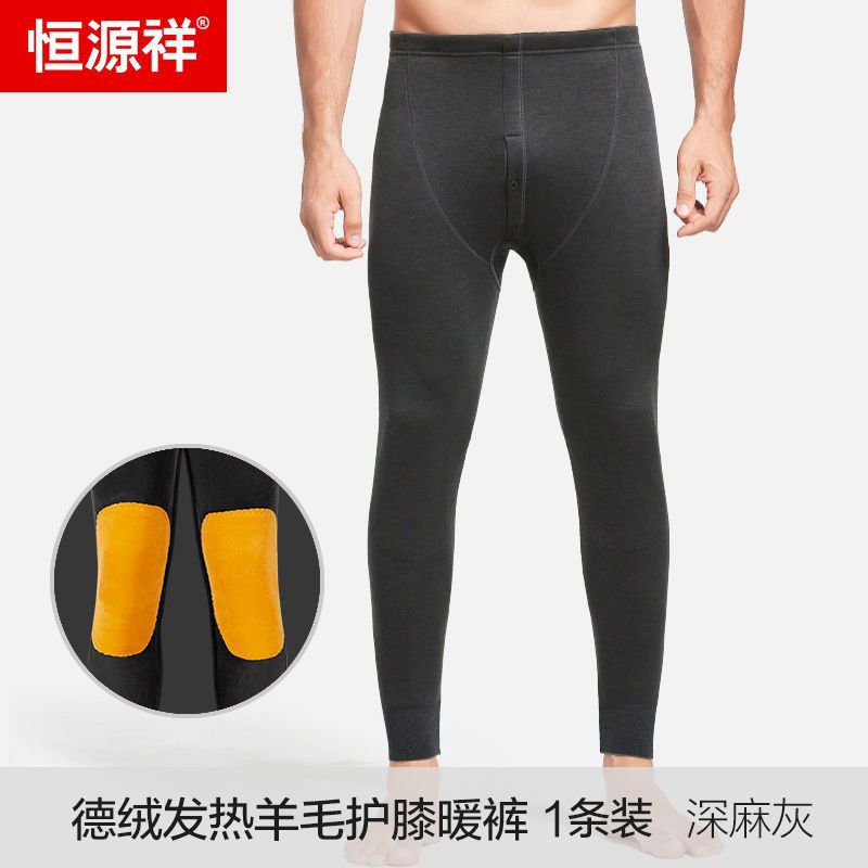 恒源祥男士保暖裤加绒加厚山羊绒秋冬季德绒打底裤毛裤秋裤棉裤男 M推荐100-120斤 320g德绒羊毛护膝/深麻灰